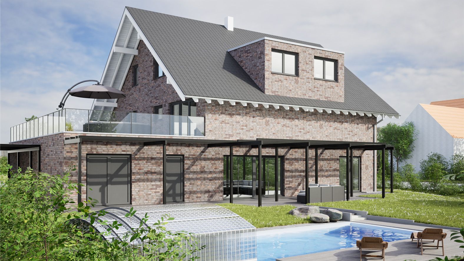 Ein weiteres Highlight ist der überdachte Pool im Garten, der den